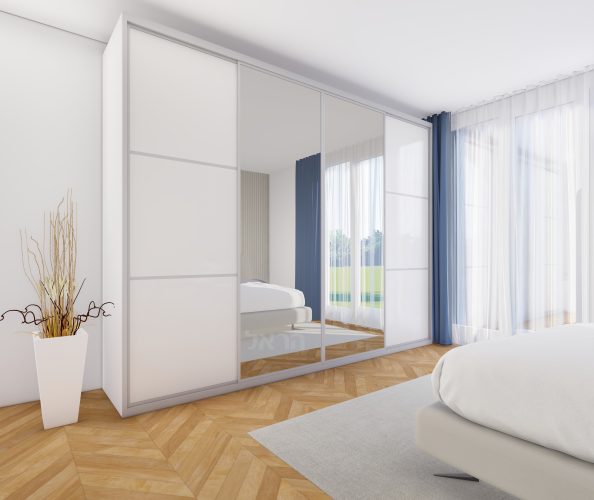 ארון הזזה 4 דלתות בדגם יפני בשילוב מראה 3102 - לבן