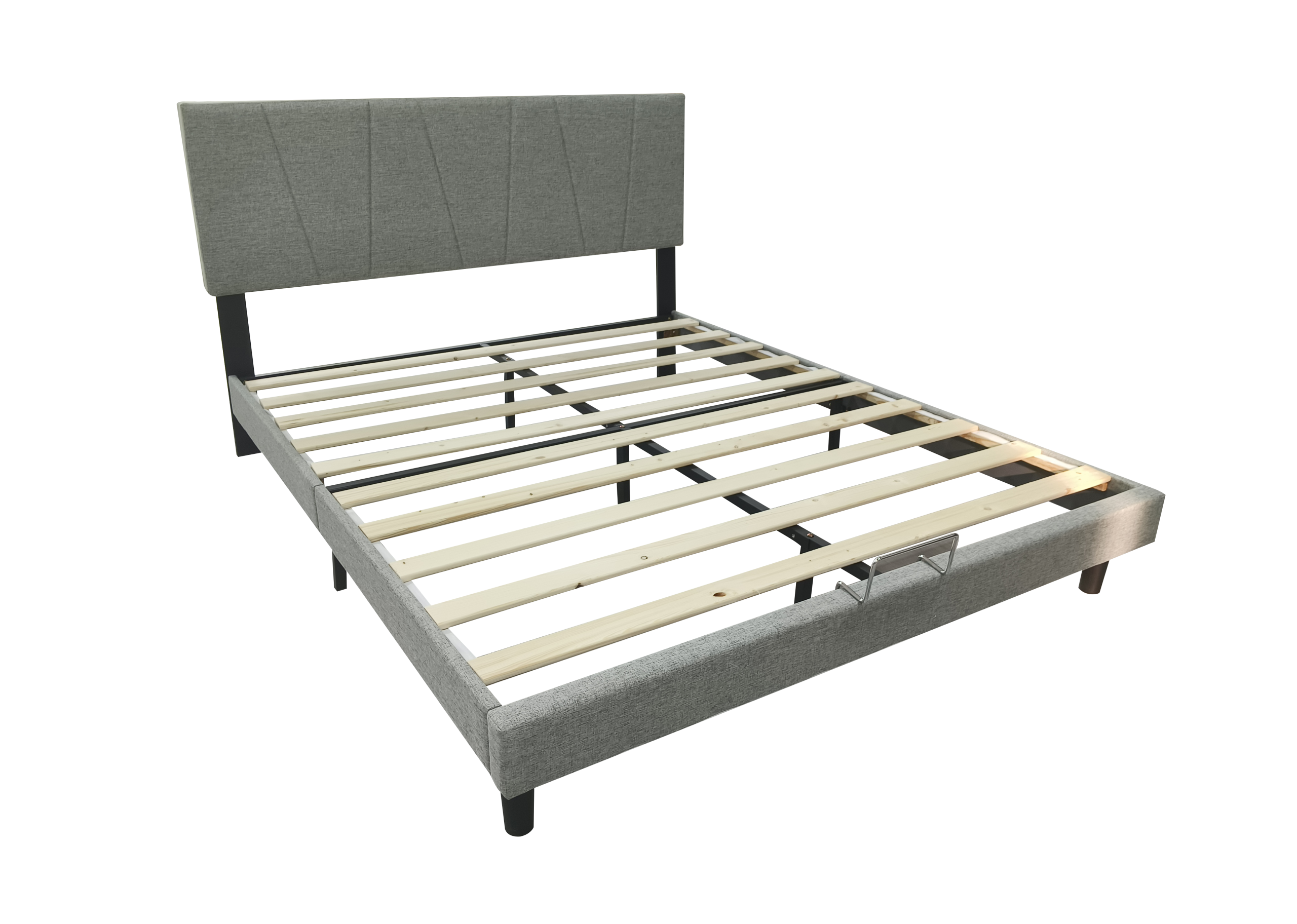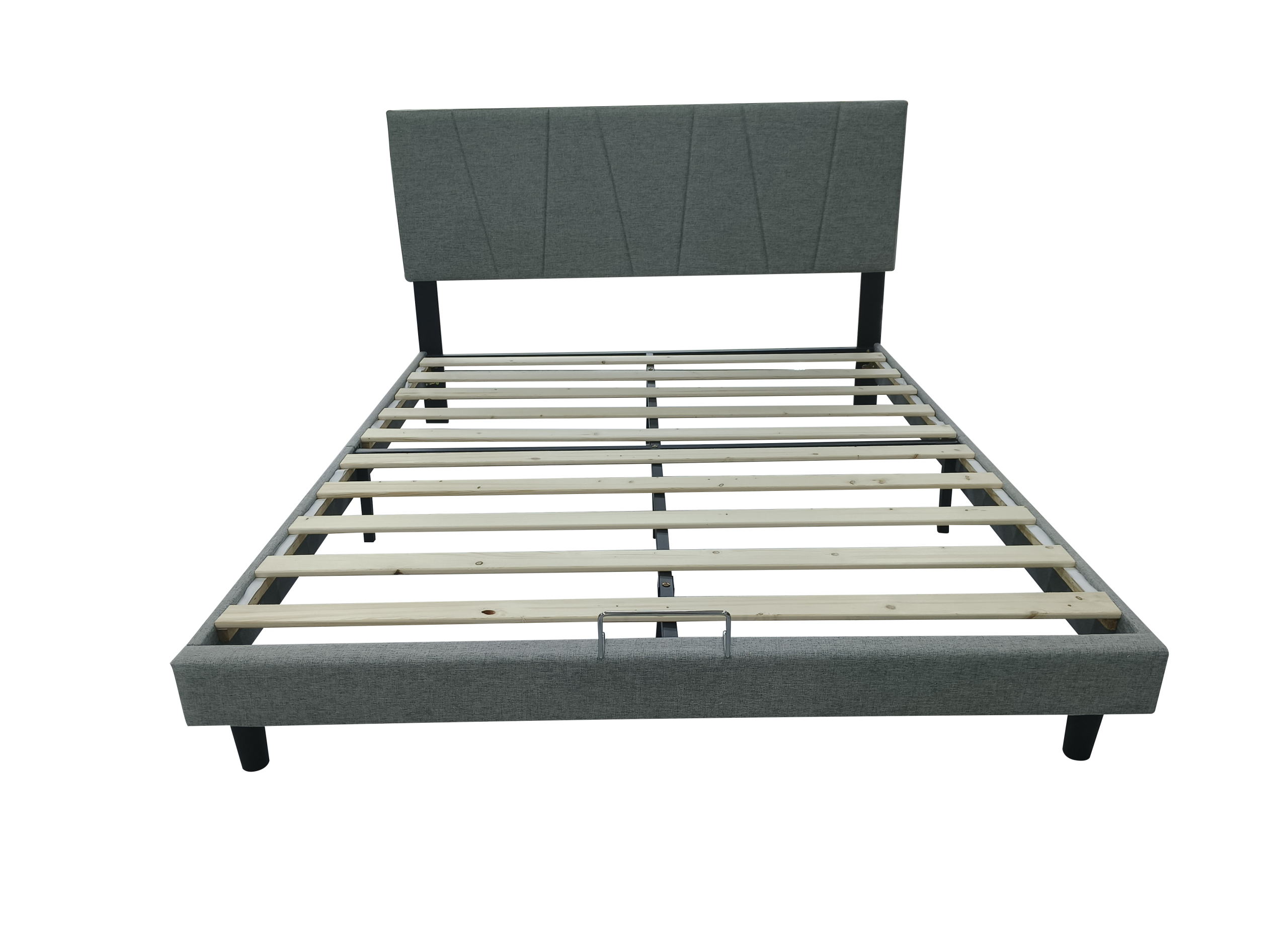 מיטת נטליה משלבת עיצוב אלגנטי ופרקטיות מודרנית – ראש מיטה מרופד באפור רך, מסגרת מתכת חזקה ובד איכותי שיוצרים אווירה נעימה בחדר השינה.